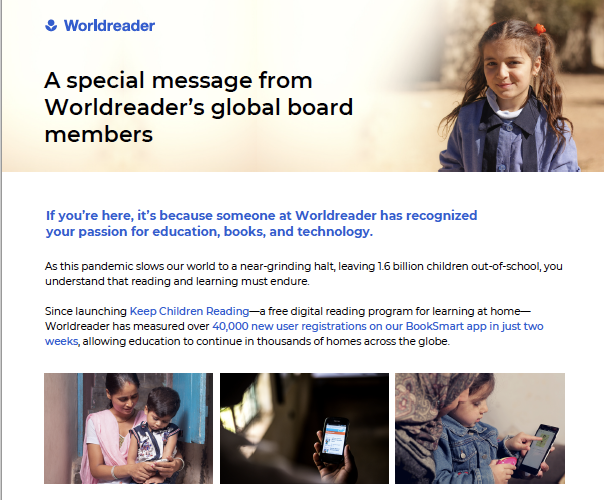 An email to Worldreader’s supporters launching the crisis response initiative, Keep Children Reading.